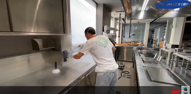 Sử dụng máy rửa hơi nước nóng trong khu vực bếp nhà hàng
